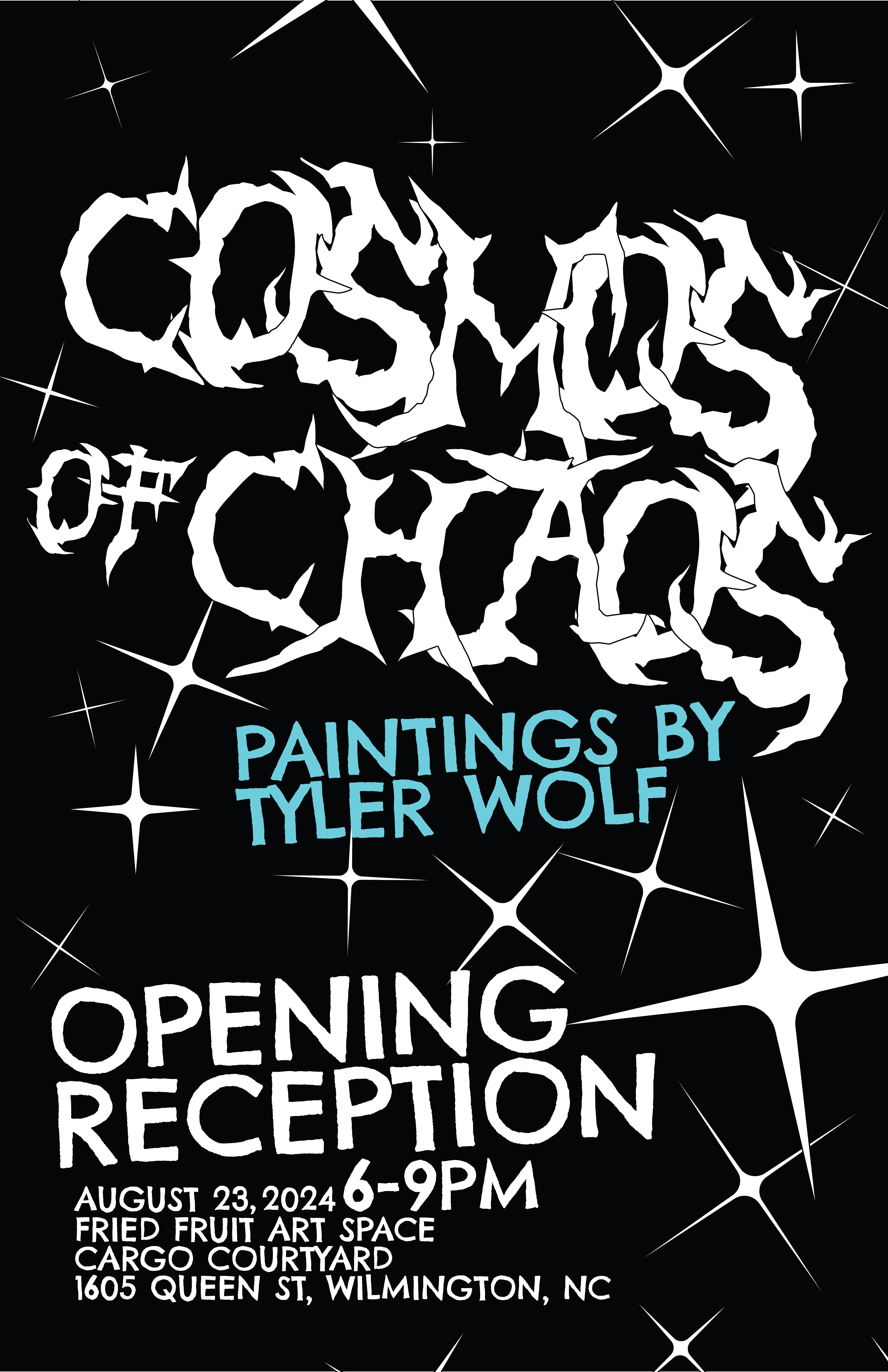 Tyler Wolf is a painter living and creating out of Wilmington, NC with his wife and two daughters. After earning a Bachelor of Fine Arts Degree in Painting and Drawing in 2001, Wolf co-founded the band Valient Thorr. Between 2002 and 2014 Wolf traveled North America and Europe. Valient Thorr made five records with Volcom Entertainment out of California. Within the band, Wolf handled merchandising and his designs were featured on the band’s clothing line and record covers.